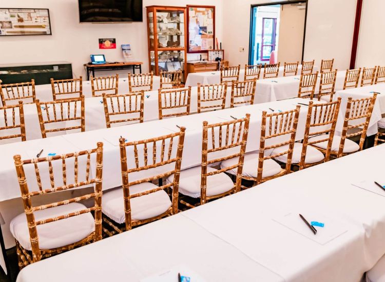 | Room name | Theatre | Classroom | Banquet | Cabaret | Boardroom | U-Shape | Cocktail |